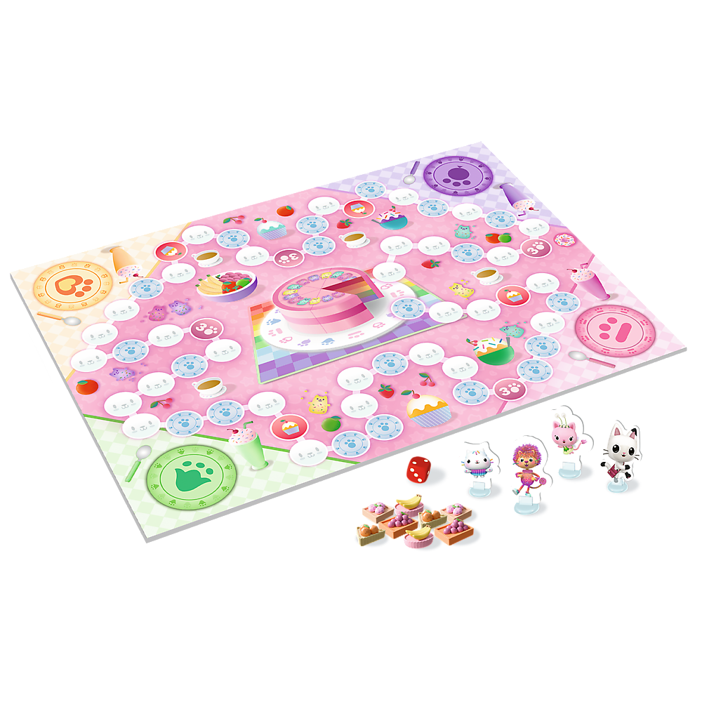 Es verspricht großen Spaß! Gabby lädt Sie zu einer Geburtstagsfeier ein! Sammeln Sie so viele Kekse wie möglich auf Ihren Tellern und beginnen Sie die Feier. Die Party beginnt, sobald alle Spieler das Spielfeld umrundet haben.